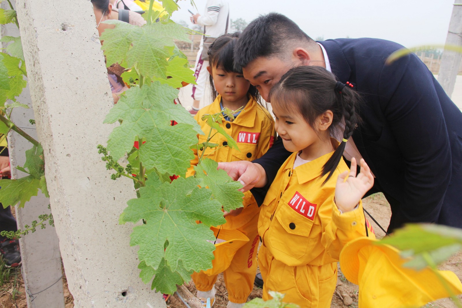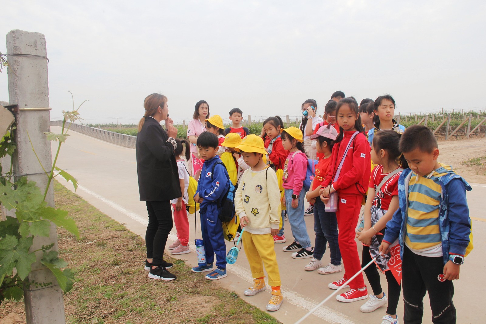 在前往格瑞特酒莊綜合大樓的路途中,同學(xué)們背著小書包、拎著小水壺,臉上洋溢著笑容,興高采烈地穿梭于葡萄園中,講解員也為同學(xué)們講解了關(guān)于園區(qū)種植規(guī)模、釀酒葡萄品種等的知識,大家充滿好奇站在田間觀察著每個葡萄的小果實,親身的去感受大自然的神奇。