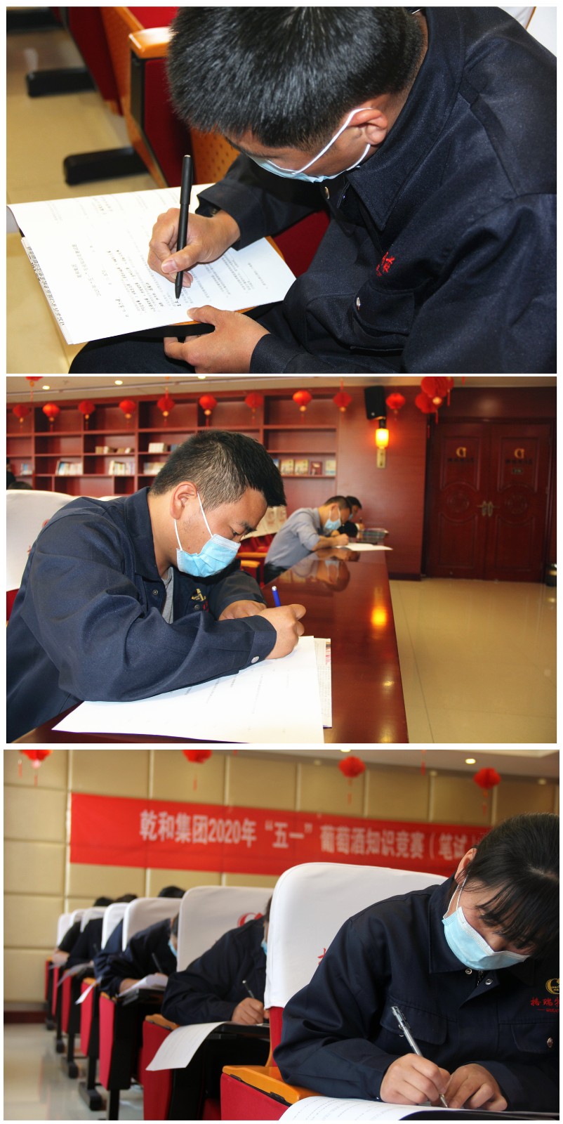 此次活動所有員工全部參加, 4月30日上午10點,參賽員工在酒莊二樓會議室、集團公司二樓會議室和酒業(yè)會議室進行考試,競賽內(nèi)容包括葡萄酒專業(yè)知識、企業(yè)文化等相關(guān)專業(yè)內(nèi)容。針對此次考試,公司全員進行了充分的準備,從復產(chǎn)復工后,就開始進行專業(yè)技能培訓,全面提升葡萄酒專業(yè)理論知識。